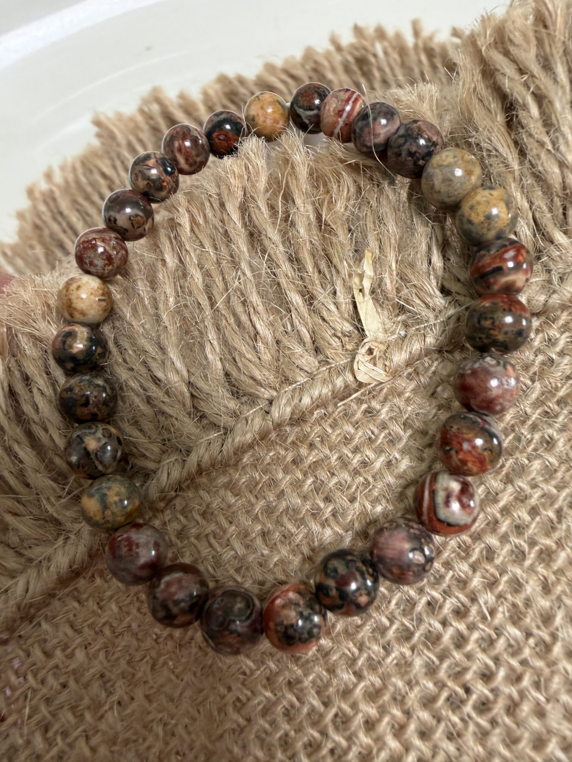 Élégant bracelet en pierres naturelles de jaspe léopard, avec des perles de 6mm. Parfait pour ajouter une touche unique à votre style.