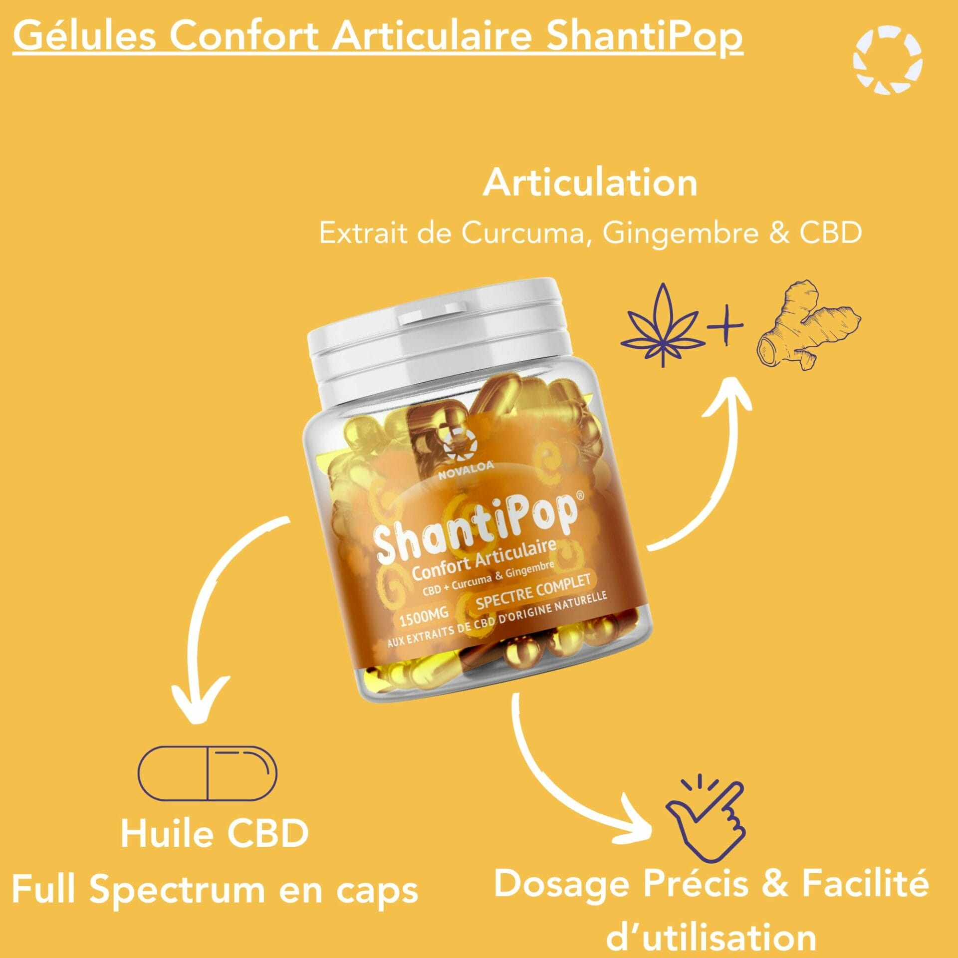Les gélules de CBD en spectre complet contiennent du gingembre et du curcuma aux propriétés anti-inflammatoires. Elles soulagent les douleurs musculaires et articulaires.