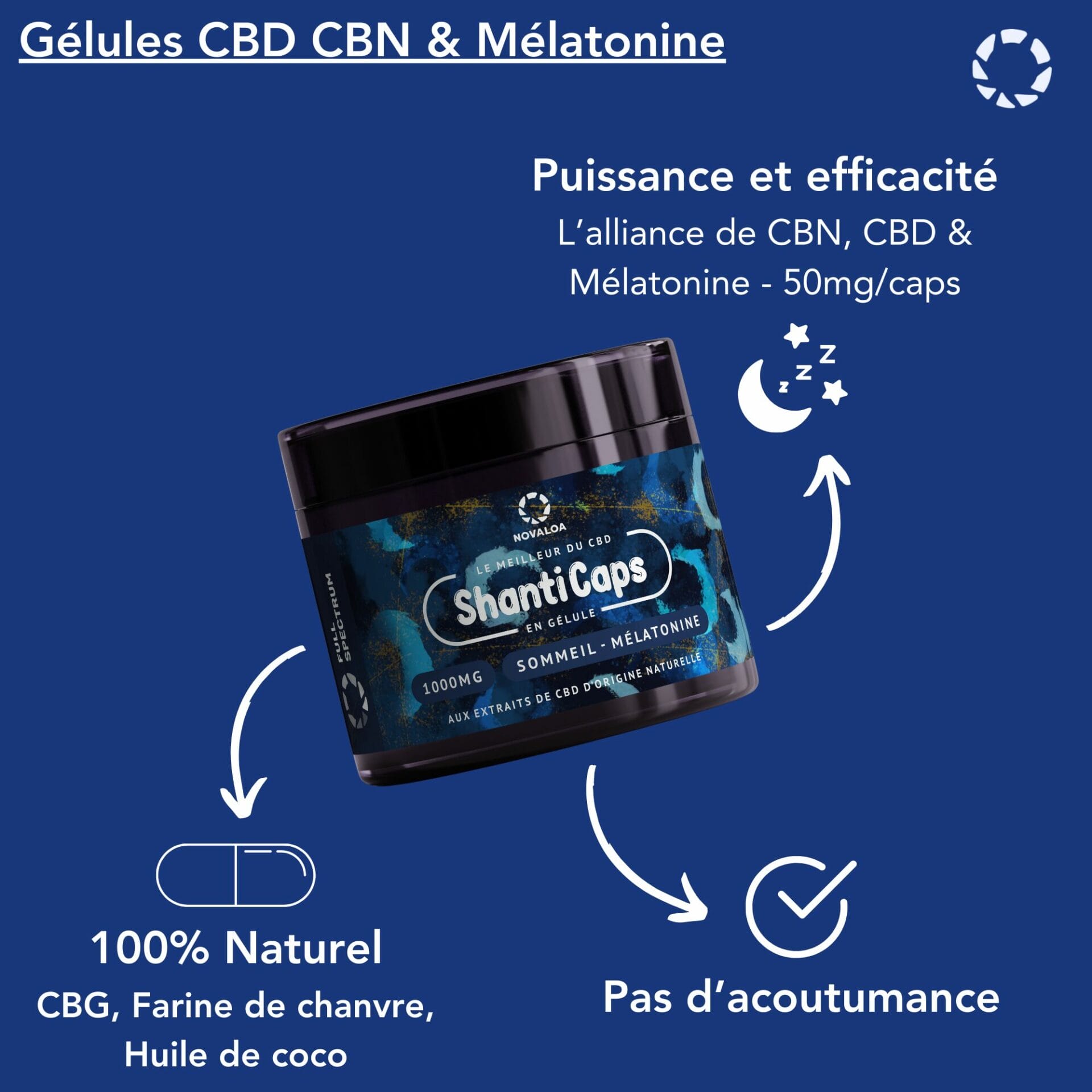 Gélules CBN-CBD & Mélatonine Sommeil : 1000mg